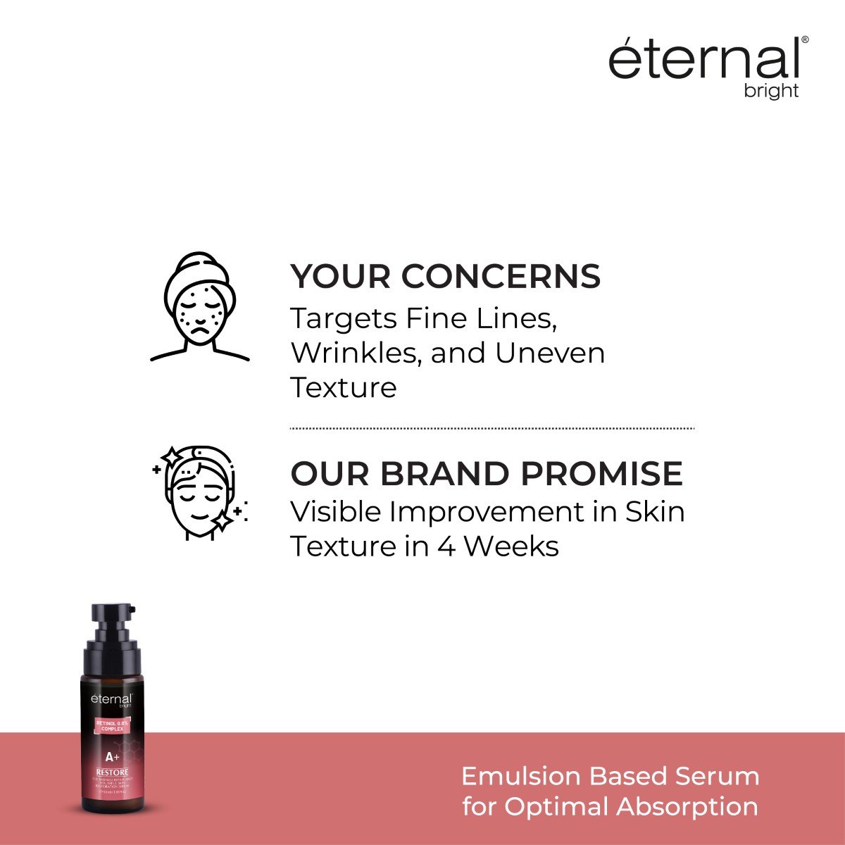 Serum is always a higher concentration of actives with better penetration, so it’s always more effective than cream.BENEFITS OF ETERNAL BRIGHT RETINOL SERUM IN ANTI-AGING SKIN CARE :