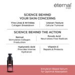 MOST ADVANCED RETINOL FORMULATION : eternal bright retinol serum offers the best formulation Retinol+Ferulic Acid+Hyaluronic Acid and Vitamin E which helps to stimulate collagen production, reduces fine lines, wrinkles and enhances skin elasticity which results in a firmer, smoother complexion of the skin which will exude youthful radiance and restore your timeless beauty. Ferulic Acid & Vitamin E shields your skin from damaging free radicals and environmental stressors.